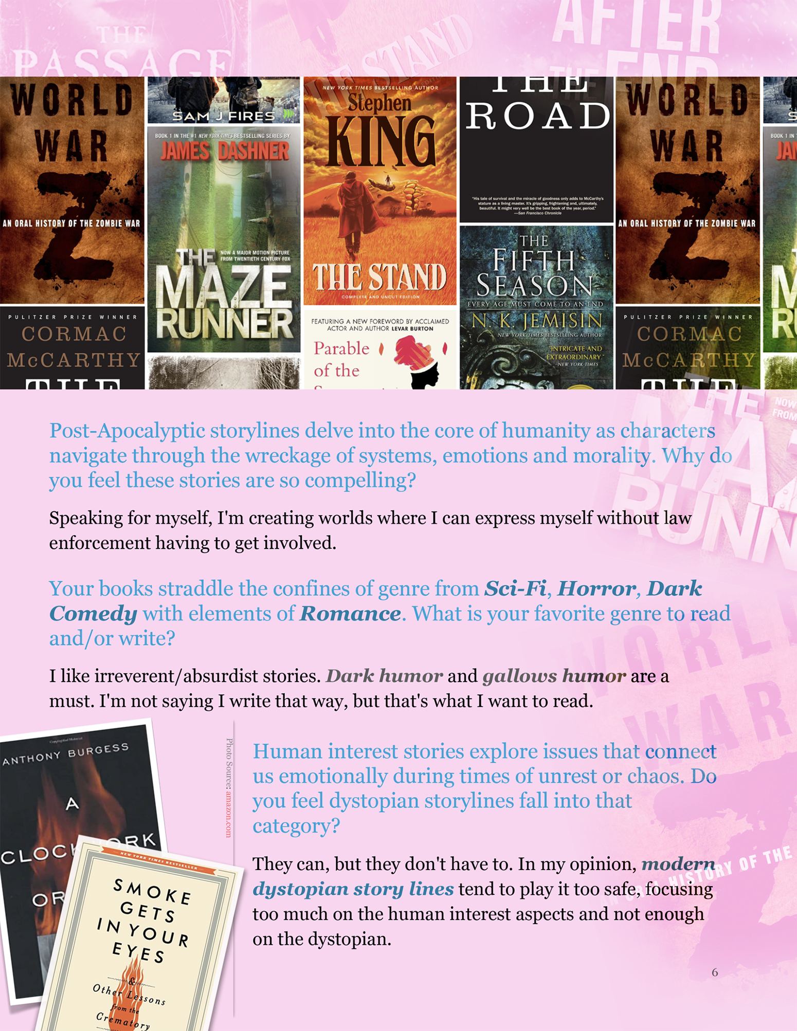 CREATOR OF POST-APOCALYPTIC STORIES CREATIVELY WRAPPED IN SPECULATIVE SCIENCE-FICTION